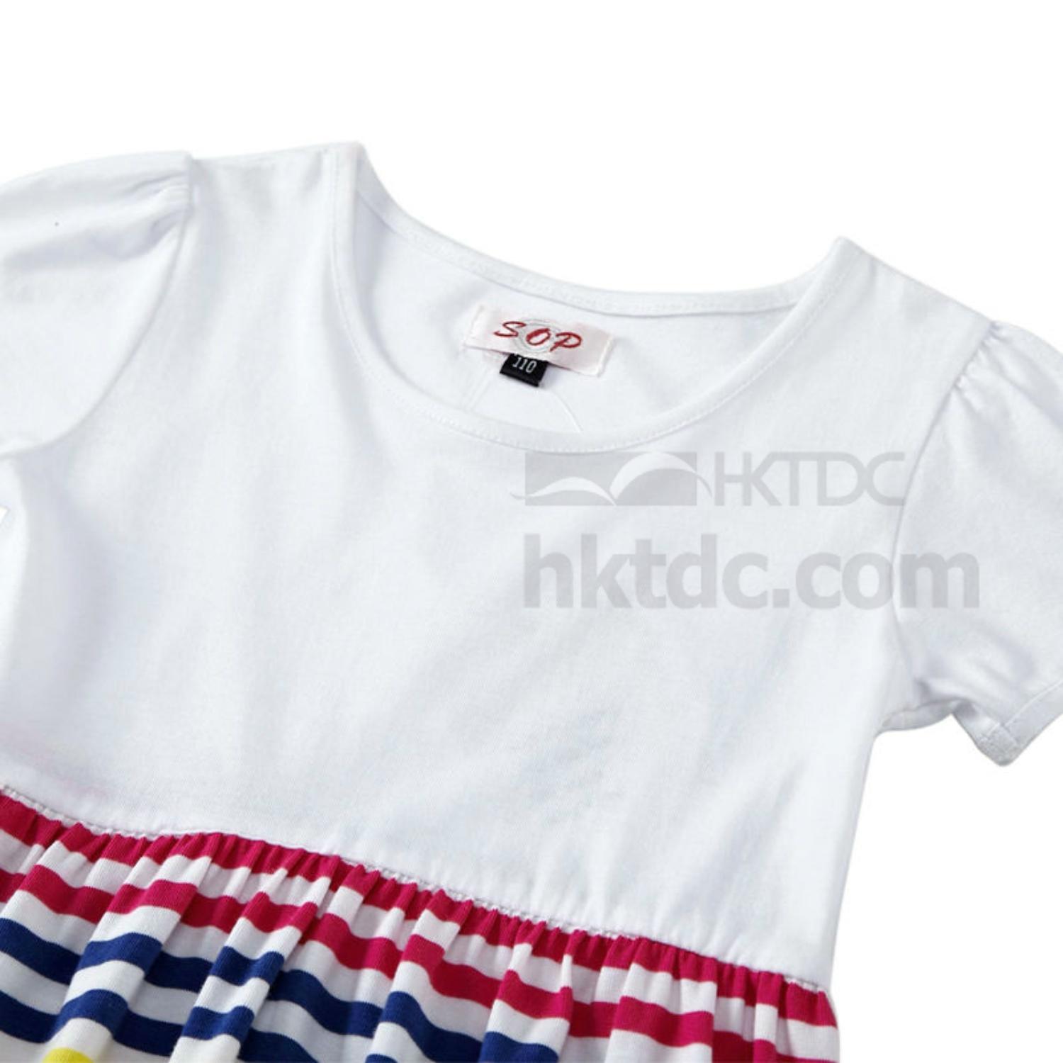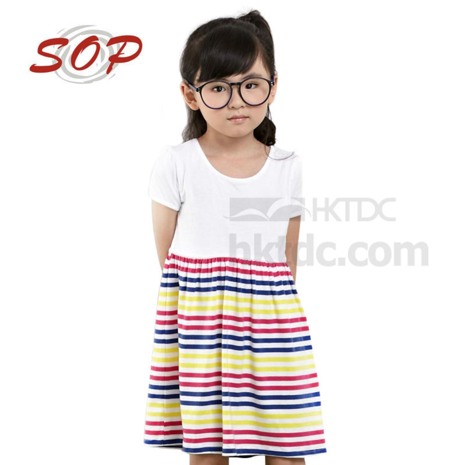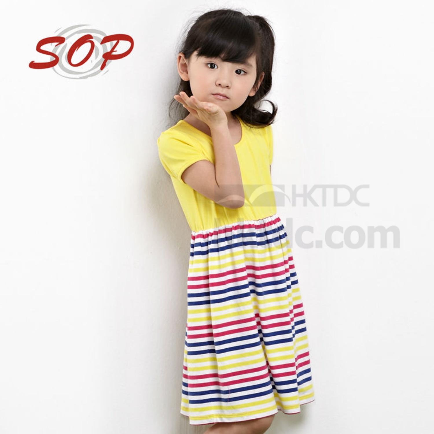 shown here is girls summer dress with plain top and striped skirt,using high quality soft cotton fabric.