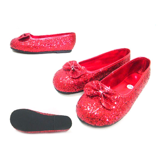This is a pair of glittering and deluxe toy shoes in red. The shoes are specially designed for girls. They are made with excellent workmanship and attention to detail.