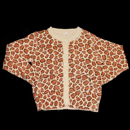 The girls' sweater ensures satisfying comfort with full cotton construction. It is designed with leopards' spots for a touch of style. This piece also features front pockets to hold small accessories.