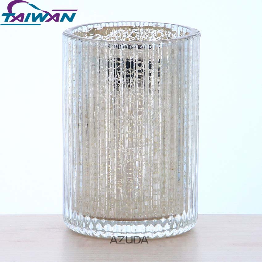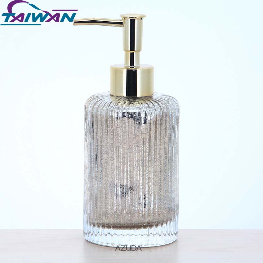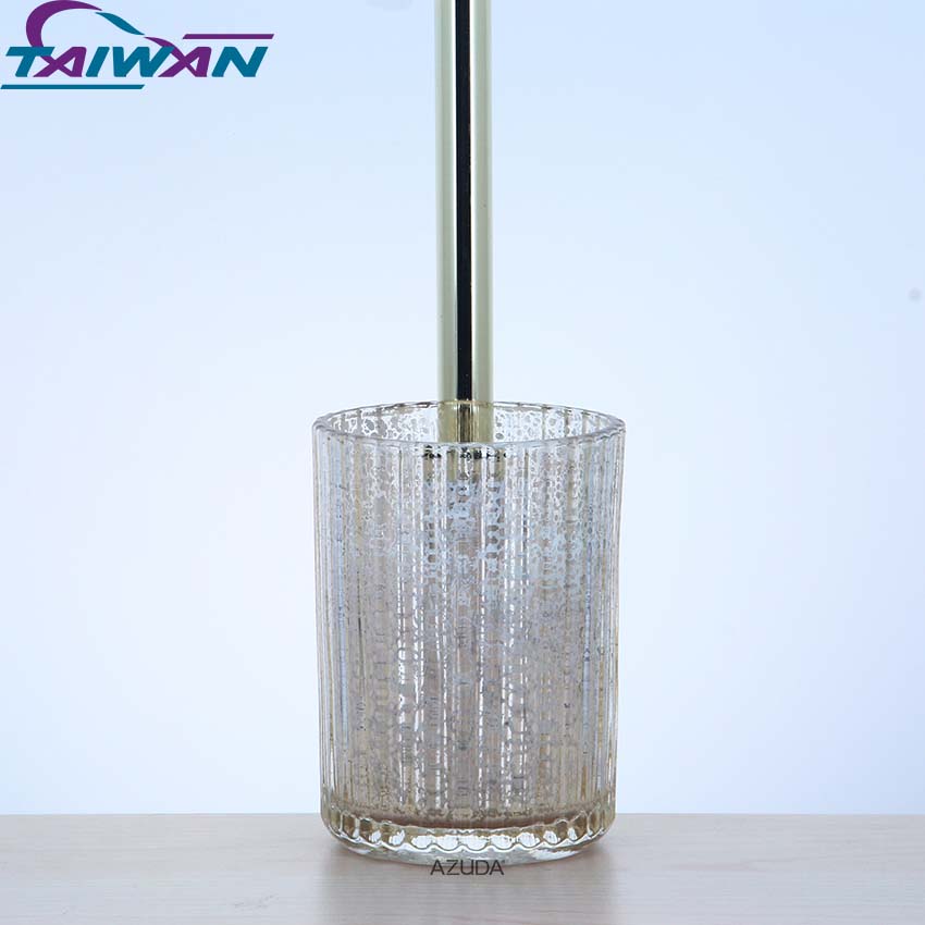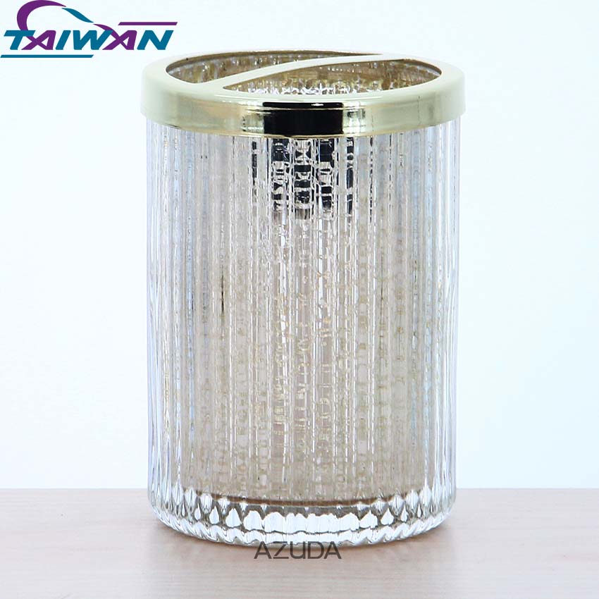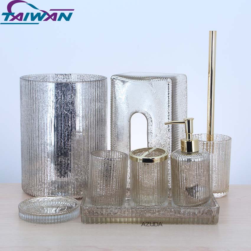 GLASS BATHROOM ACCESSORIES SET RIBBED DESIGN W/MERCURY EFFECT IN GOLD