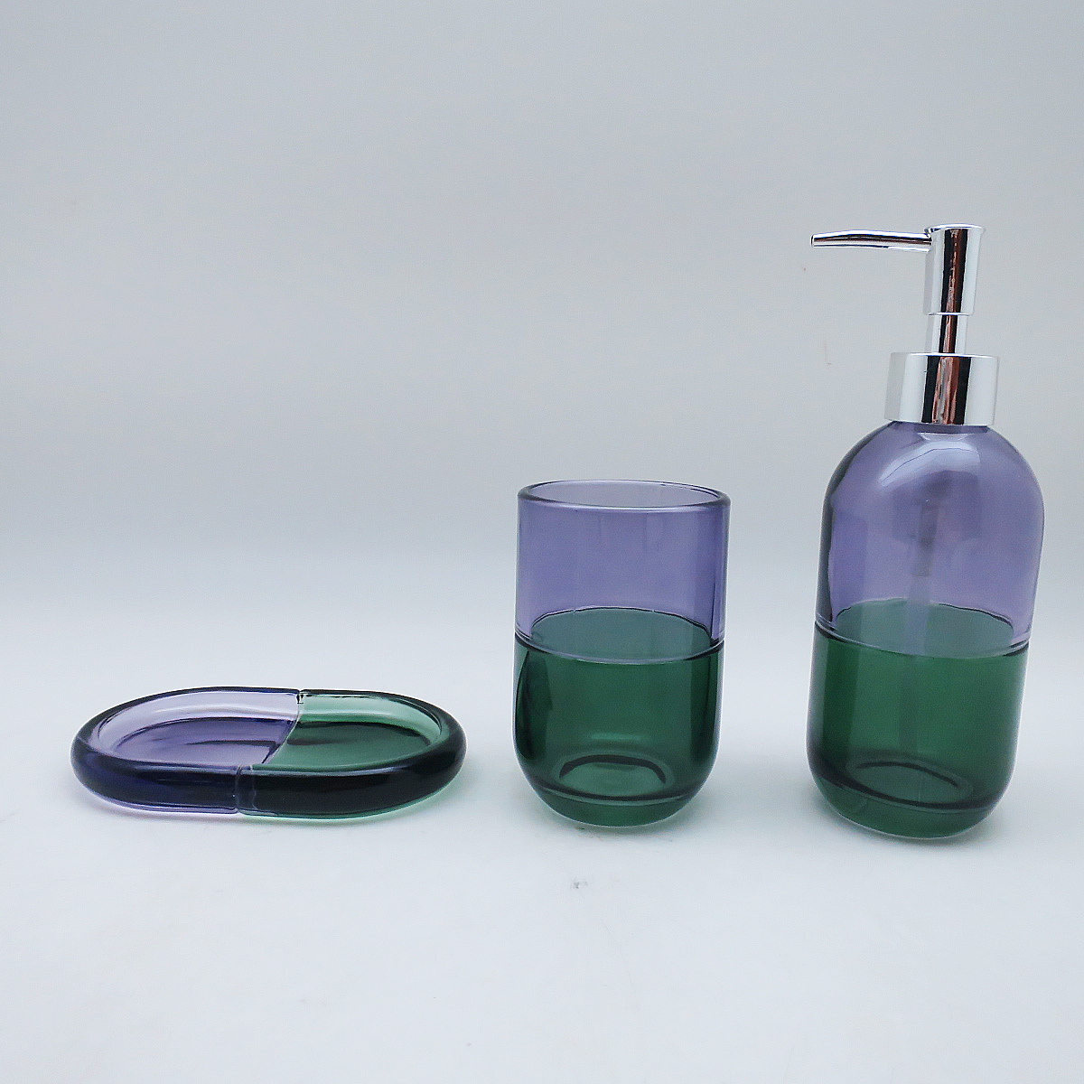 Glass Bathroom Accessories Set W/Two-Tone Effect Capsule Design