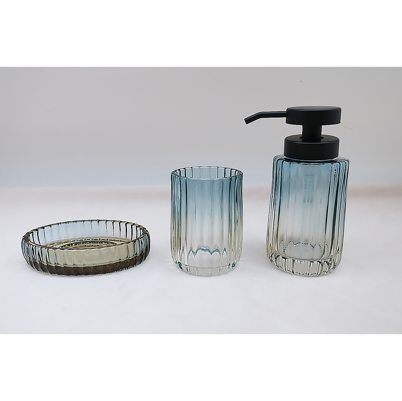 GLASS BATHROOM SET RIBBED DESIGN IN GRADIENT FINISH
