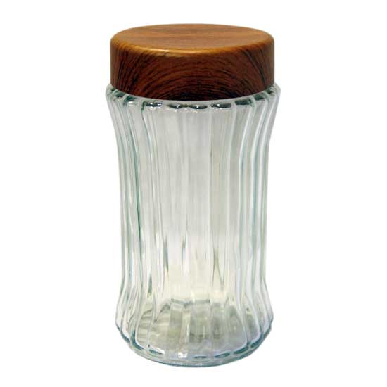 The glass bottle features a brown lid on top. Its transparent body comes with a ribbed design. This bottle is completed with a 2 liter design.