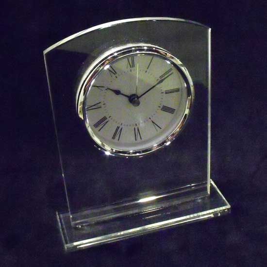 This desktop clock flaunts a simple yet modern design. It comes with a white-and-black dial in an elegant Roman style. The burnished case is embedded in a glass frame to stand on desktops.