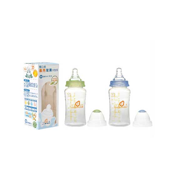This 240ml feeding bottle is made of glass for sturdiness. It is designed with water level indicators for ease of use. This charming feeding bottle is a safe and reliable choice for your baby.