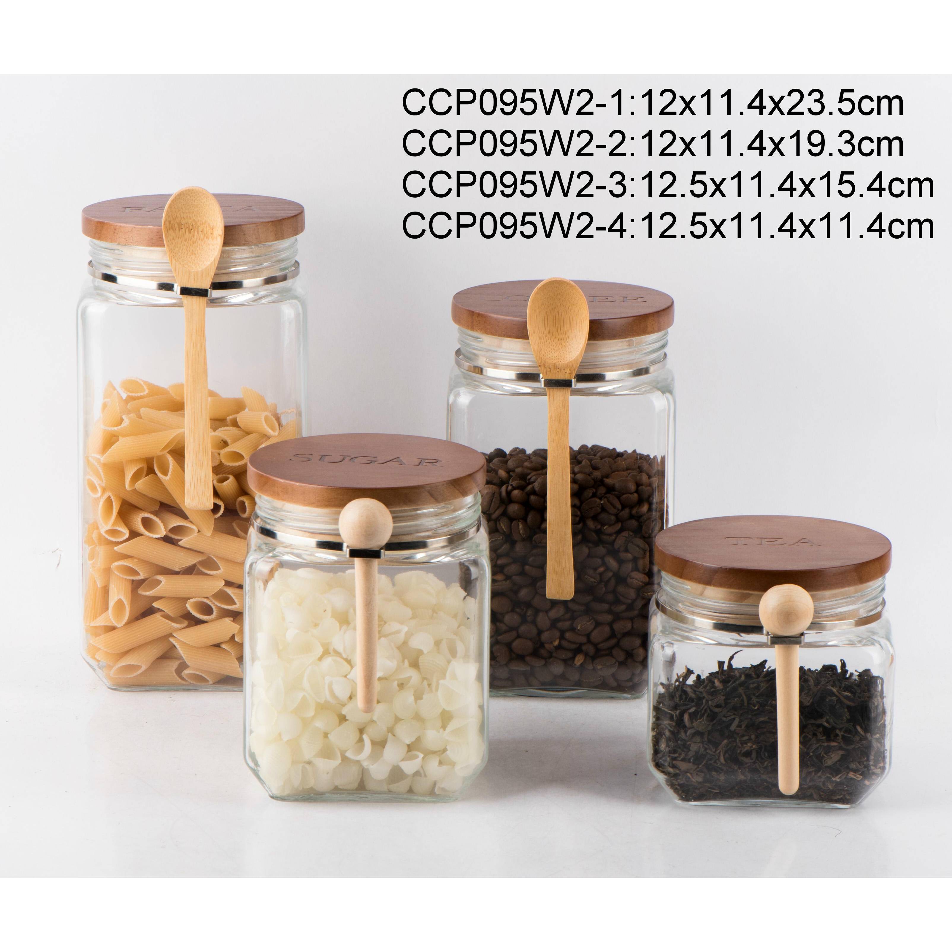 Glass Food Storage Jar With Wooden Lid And Spoon