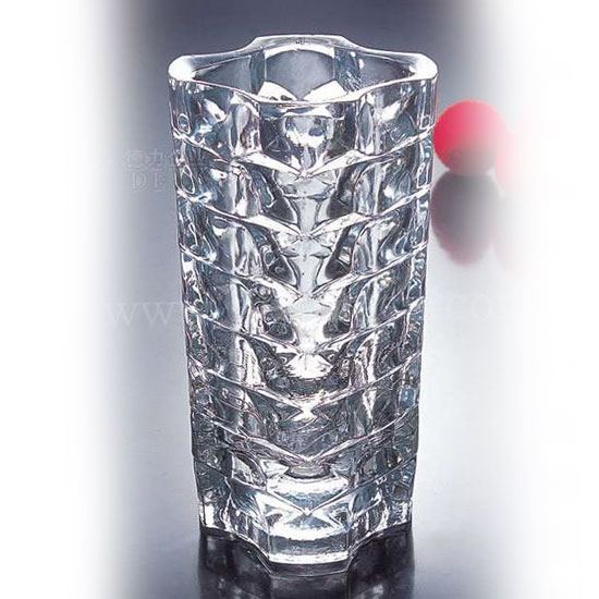 This is a high-quality glass vase with a robust housing. It is finely crafted with delicate details for an attractive look. This stylish glass vase complements your modern home nicely.