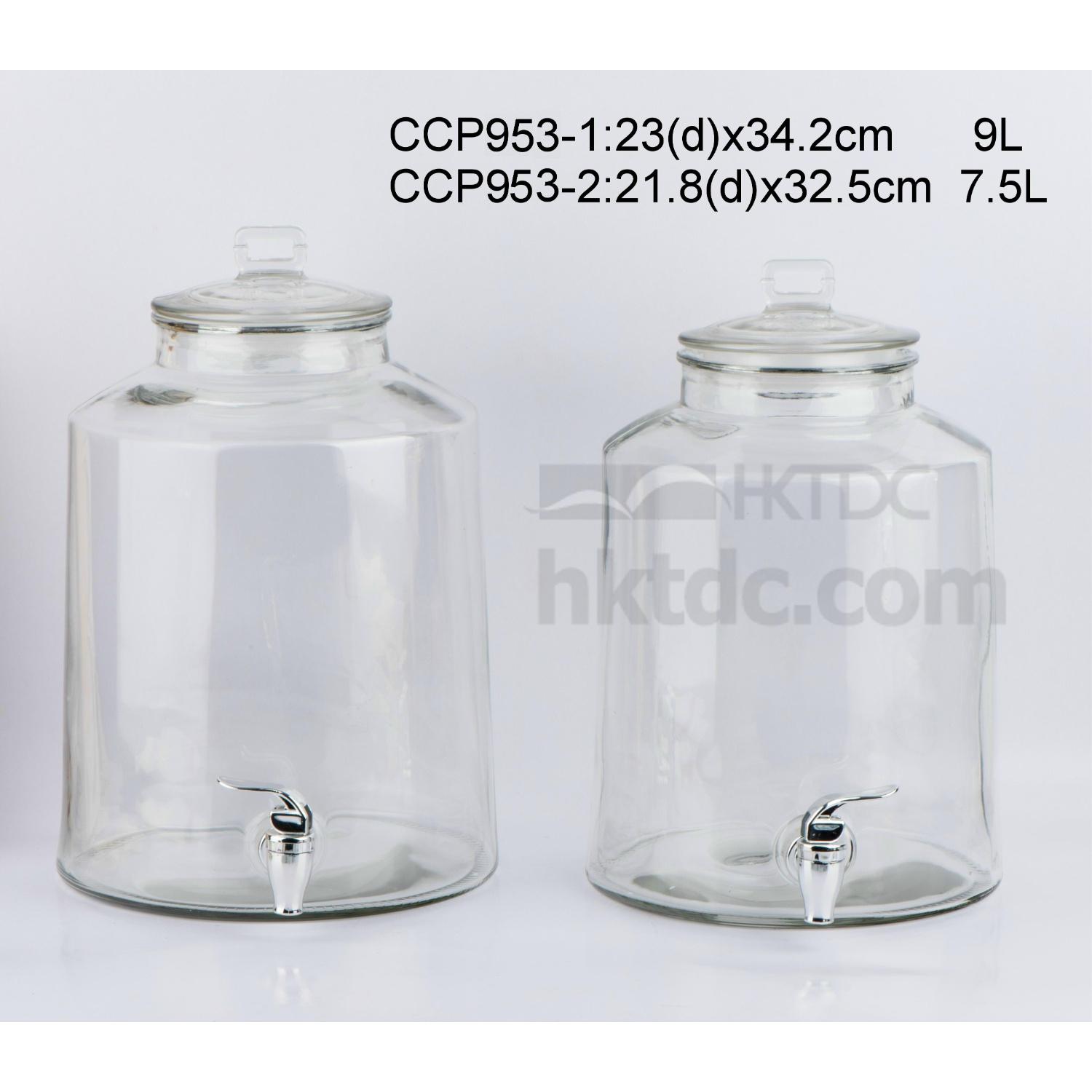 Glass beverage dispenser with glass lid and tap