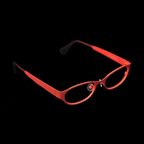 This red unisex glasses frame features oval-shaped rim. The fashionable glasses frame is accented by high-density black dots. The tapered temples complete the design of this stylish glasses frame.