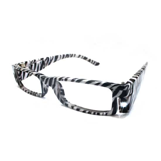 This outlined full-rimmed glasses frame flaunts allover zebra-printed patterns, showcasing a wild yet chic accent. Each corner is accented with a mini LED light for added function. This funky spectacle frame will surely catch people’s attention.