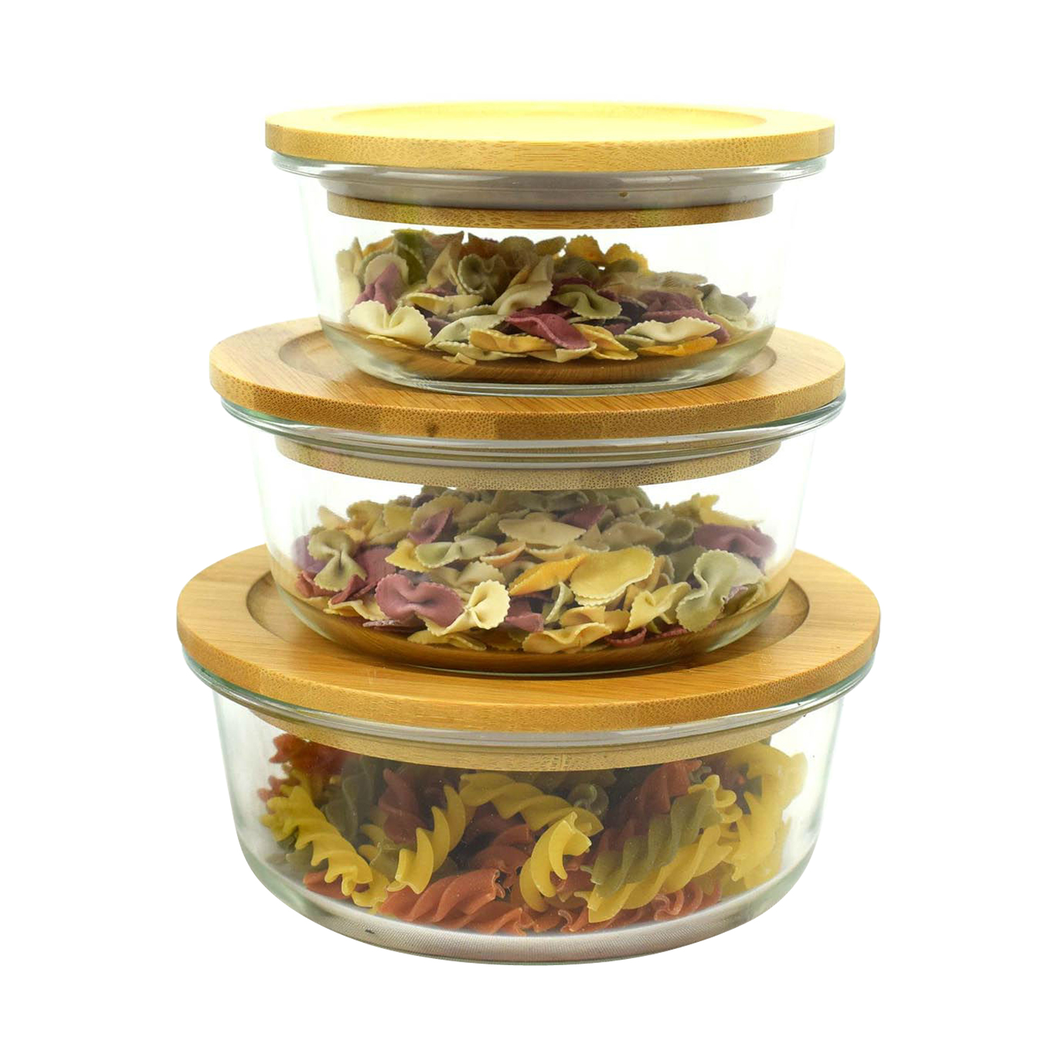 With wooden toned lids.