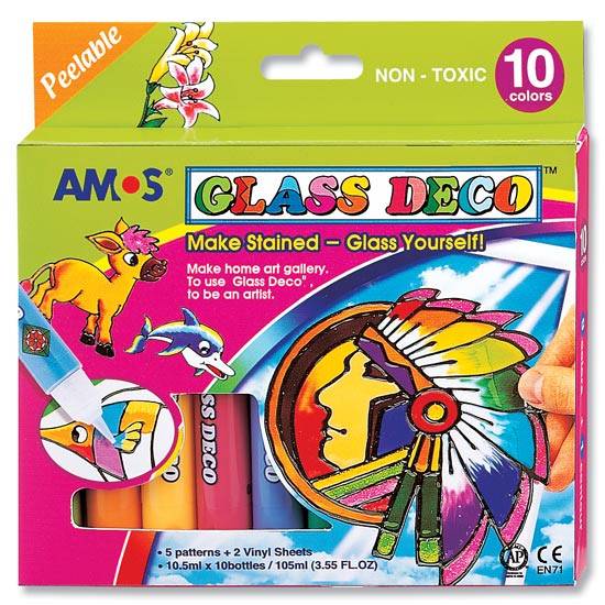 The glitter glue set is packed in a paper box. It includes 10 colours. It is used for writing, drawing and decoration.