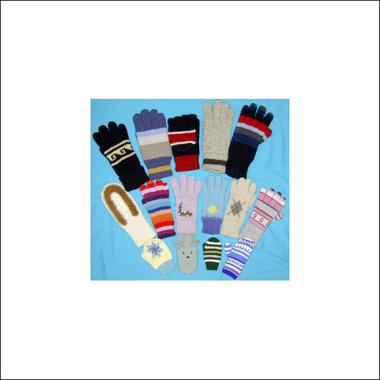 2nd row: ladies and teen's mitten gloves with attachment; emboridery and jacquard kint