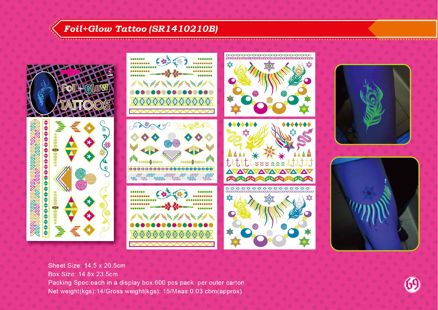 3C glow dark foil tattoo sheet size: 14.5*20.5cm
