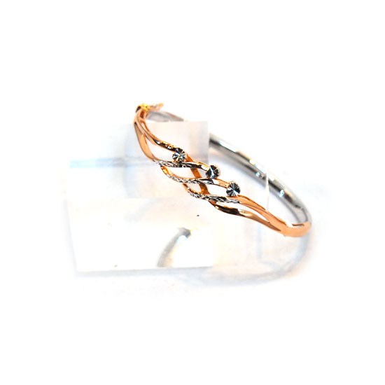 This is a bangle with a dainty and chic design. It is made of different kinds of 18K gold with exquisite details. Add a touch of glamor to your look with this well-made bangle.