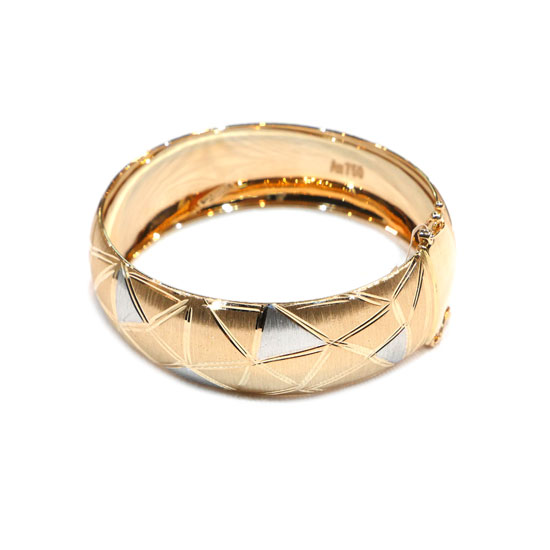 This well-polished, refined rose gold bangle shines dynamically. The bangle is crafted with meticulous attention to detail. The white gold accents are carefully made for an extra dose of stylishness.