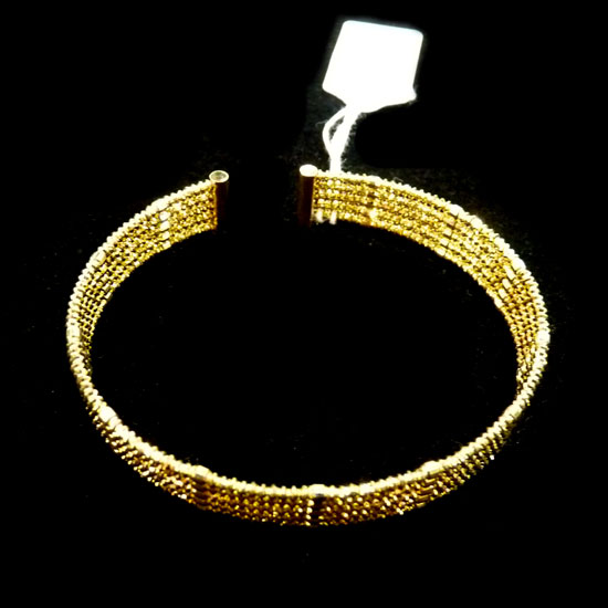 This is a stylish 18K yellow gold bangle with a fashionable design. It is finely made with great craftsmanship and delicate details for an attractive look. This gold bangle is an ideal addition to complete your jewelry collection.