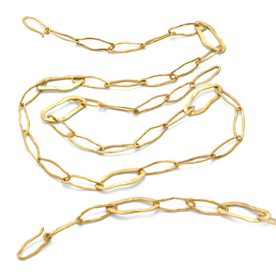 The chain necklace and bracelet in 18k yellow gold are handcrafted with excellent craftsmanship. They are simple yet timeless. They add a touch of playfulness to trendy streetwear.