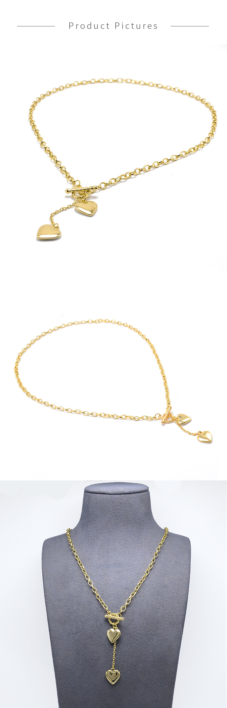 Gold Chian Necklace with Heart Pendants 20 Inch