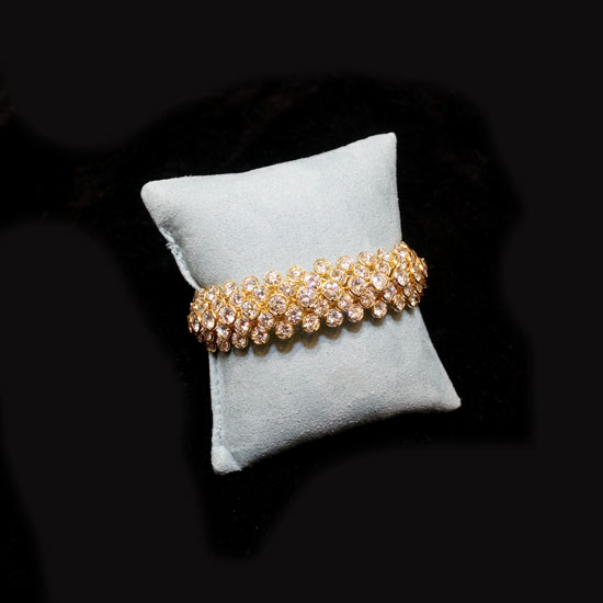 This bracelet is finely carved from yellow gold and diamond. It is exquisitely made with nice craftsmanship. It brings out your unique personality without sacrificing your beauty.