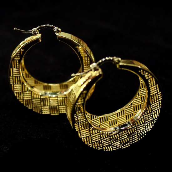 The beautiful earrings here are designed in a nostalgic ring shape. The design features exquisite checked patterns on the glittering bands. The earrings come with a shiny finish to showcase a chic design.