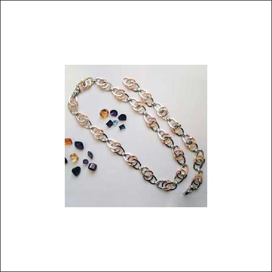 Cable link chain jewellery with rose gold circles and white gold ovals.