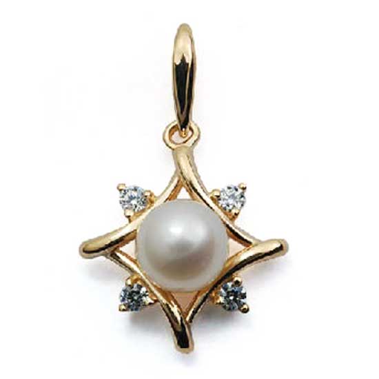 This gold pendant comes with a stylish and fashionable design. It is crafted with a sparkling pearl as the centerpiece for added elegance. This gold pearl pendant complements your elegant look nicely.