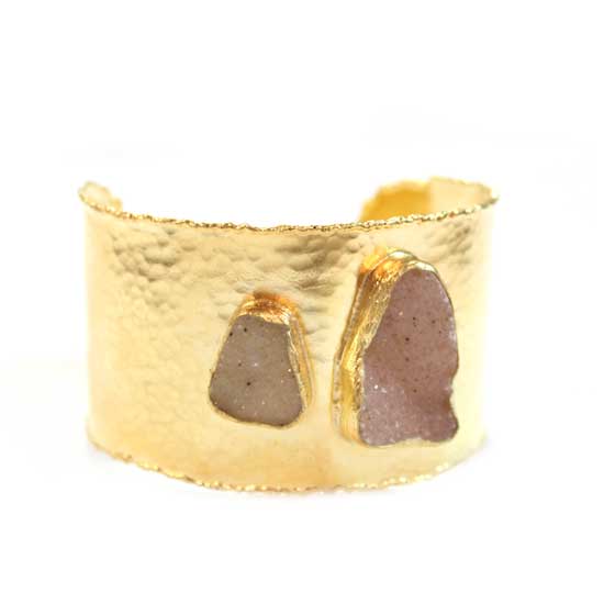 This is a gold plated bangle with a unique and fashionable design. It is decorated with natural druzy embellishments for added style. This trendy bangle makes a great accessory for your stylish outfit.