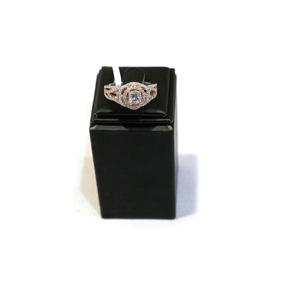 This 18K rose gold and white gold ring comes with a fashionable and luxurious design. It is crafted with dazzling diamonds for an elegant touch. This stunning ring surely is a great item for adding some glamor to your slender finger.