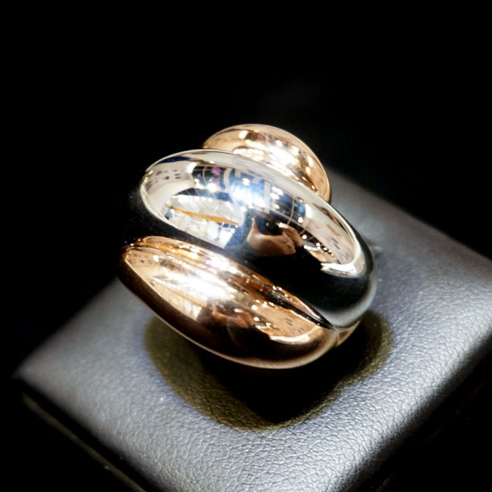 This is a fashionable finger ring that is made of rose gold and white gold. It is highly polished to deliver maximum luster at all angles. This finger ring is an ideal addition to complete your fashion collection.