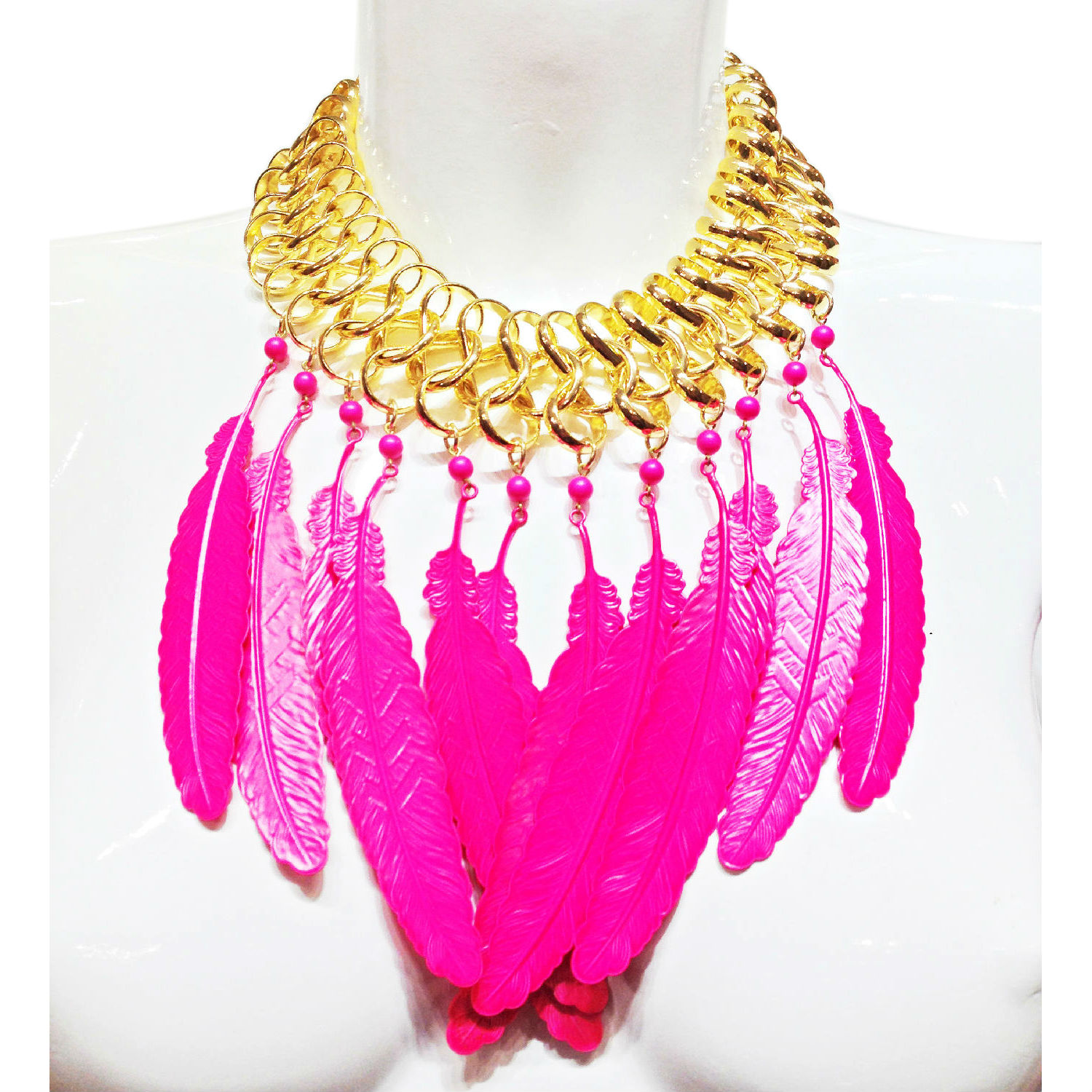 Golden Chain With Neon Pink Feather