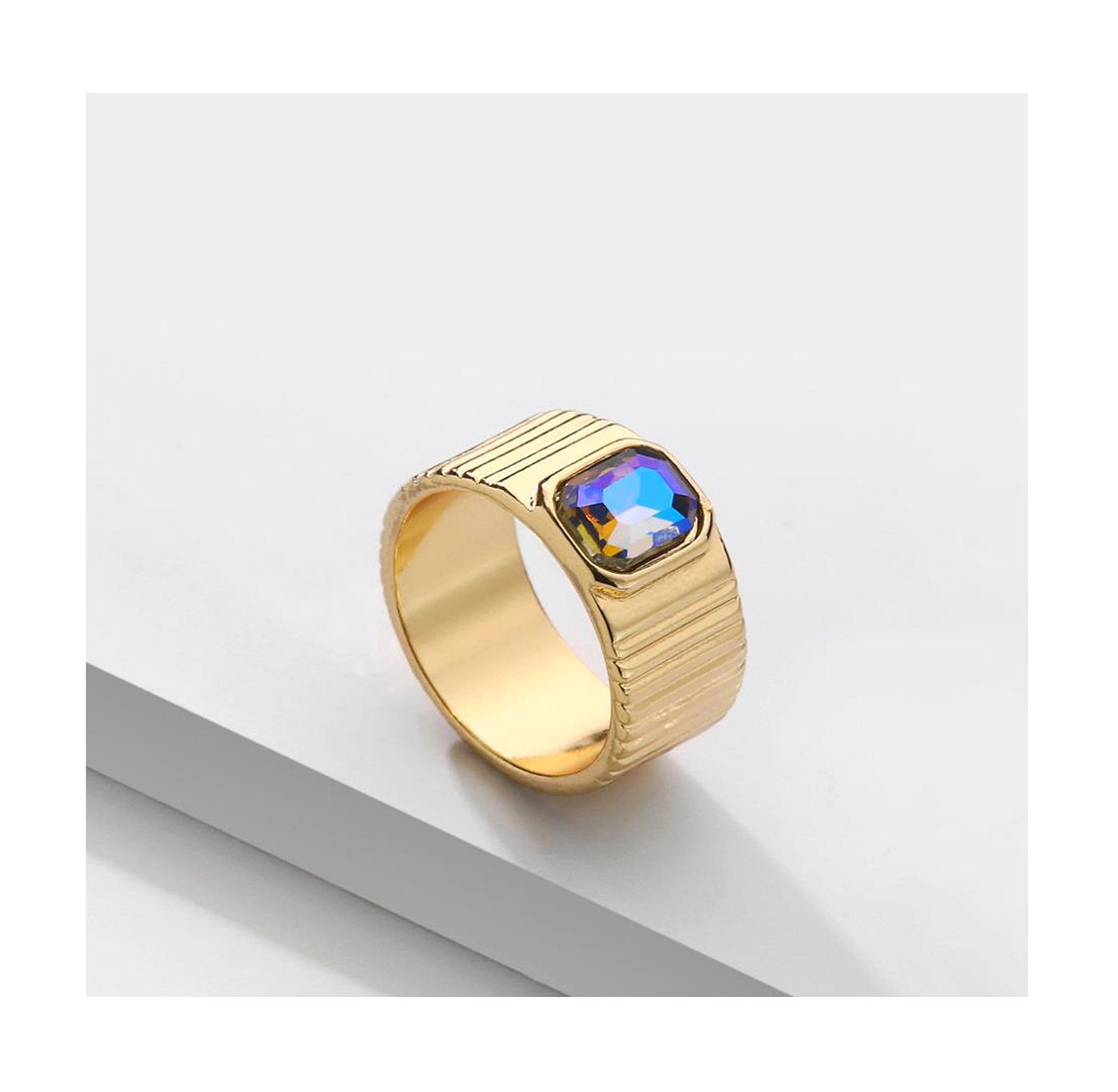 As shown is a high-fashion colorful crystal style ring with alloy metal materials.