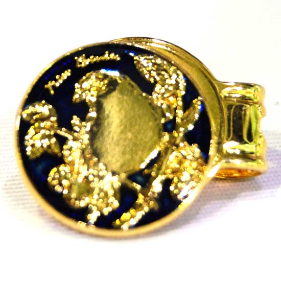 Displayed here is a golf ball marker with a magnetic closure. The brass material is well polished and conveys a sense of elegance. This golf ball marker is a good gift idea for golf fans.