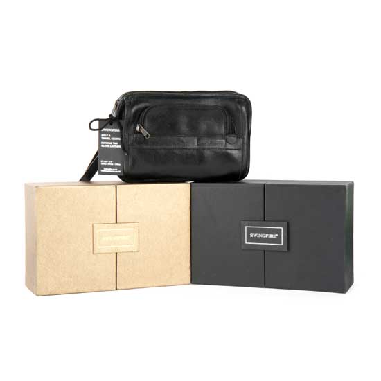This classic golf clutch features a supple black leather exterior. The functional golf clutch is designed with 13 pockets for easy organization. The golf clutch is secured with YKK zipper closures.