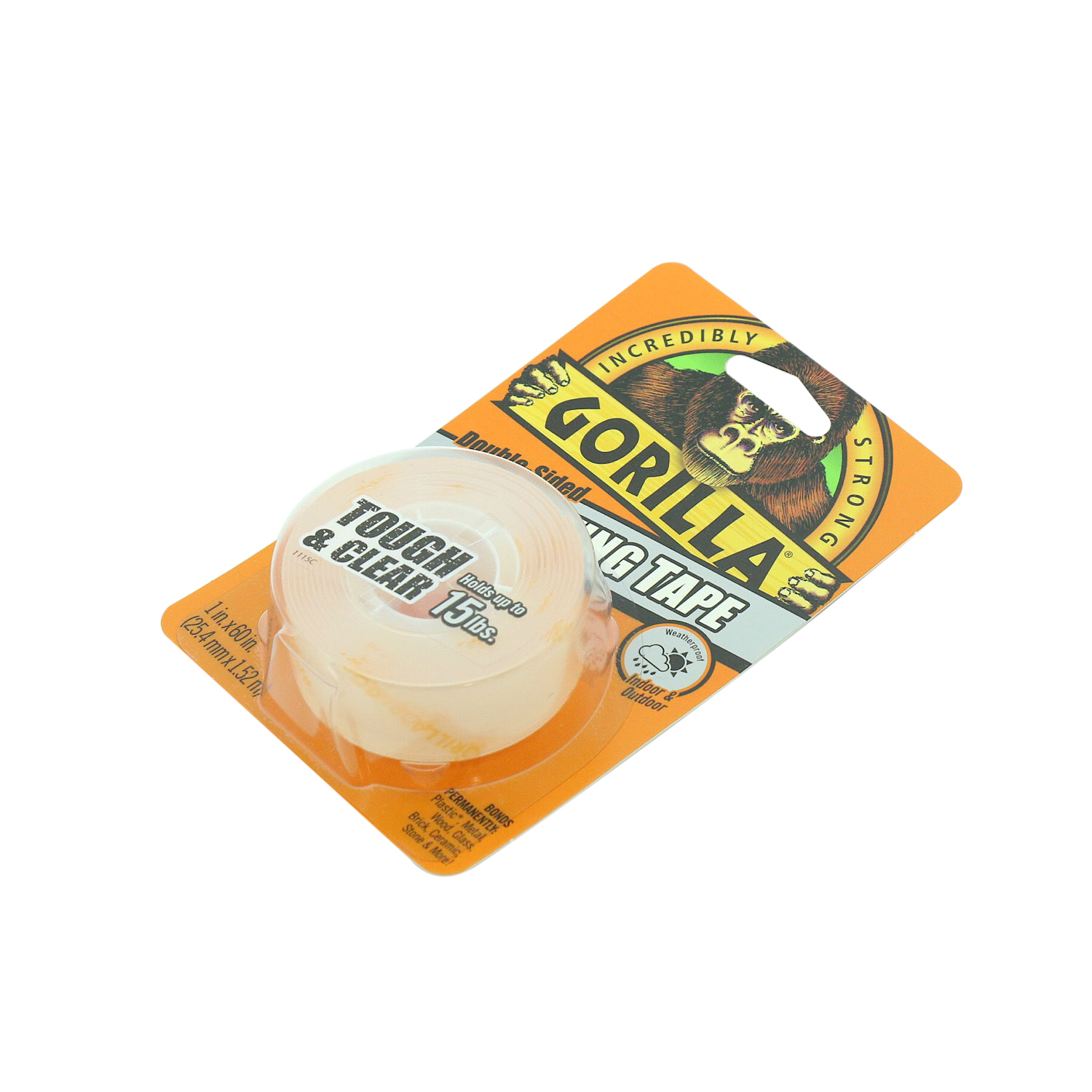 Gorilla Heavy Duty Mounting Tape and Tough & Clear Mounting Tape are super tough and mount in an instant, holding tight up to 15 lbs for Heavy Duty Mounting Tape while Tough & CLear Mounting Tape provides crystal clear, weatherproof bond.