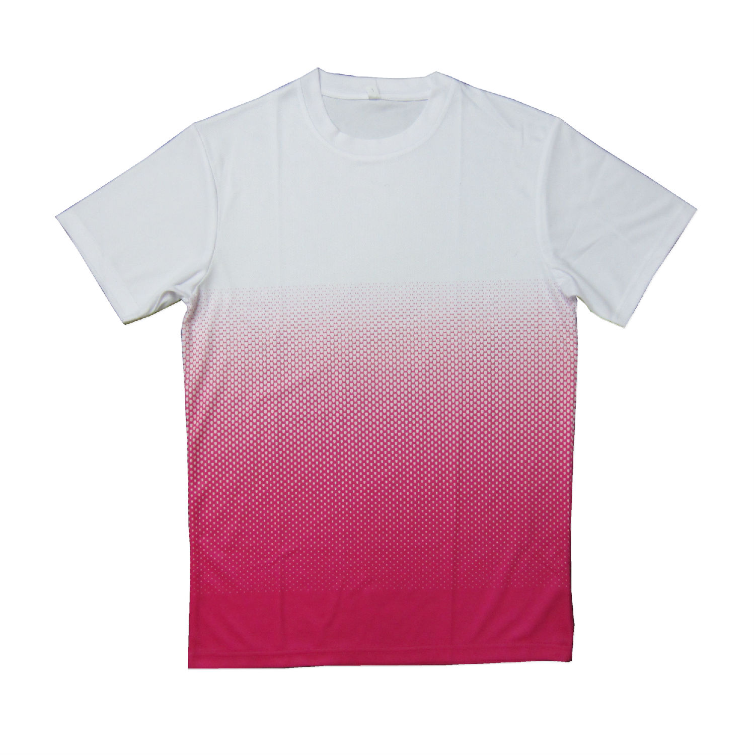 Enjoy sports in style and comfort with this sublimation printed sports T-shirt. It is made of moisture wicking fabric and has short sleeves with a crew neck. This T-shirt comes in a gradient color and offers a comfortable and breathable fit. It is sublimation printed and is available in a very flexible quantity for using as uniform for small clubs and teams.