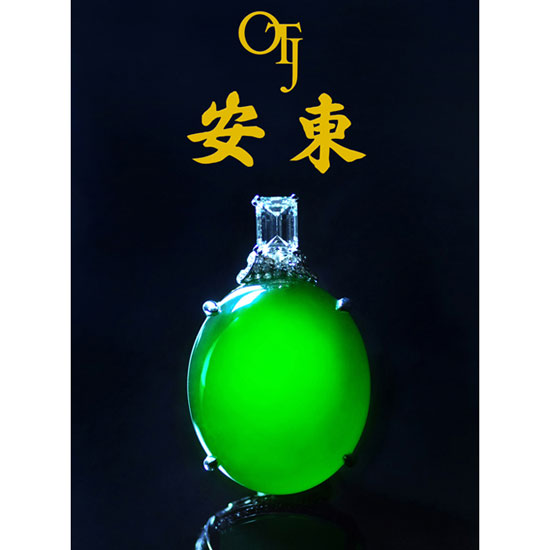 This marvelous pendant features an impeccable jadeite cabochon with rich, even, soft emerald color. An emerald cut diamond adorns this pendant on top. This fascinating pendant highlights the wearer in any occasion.