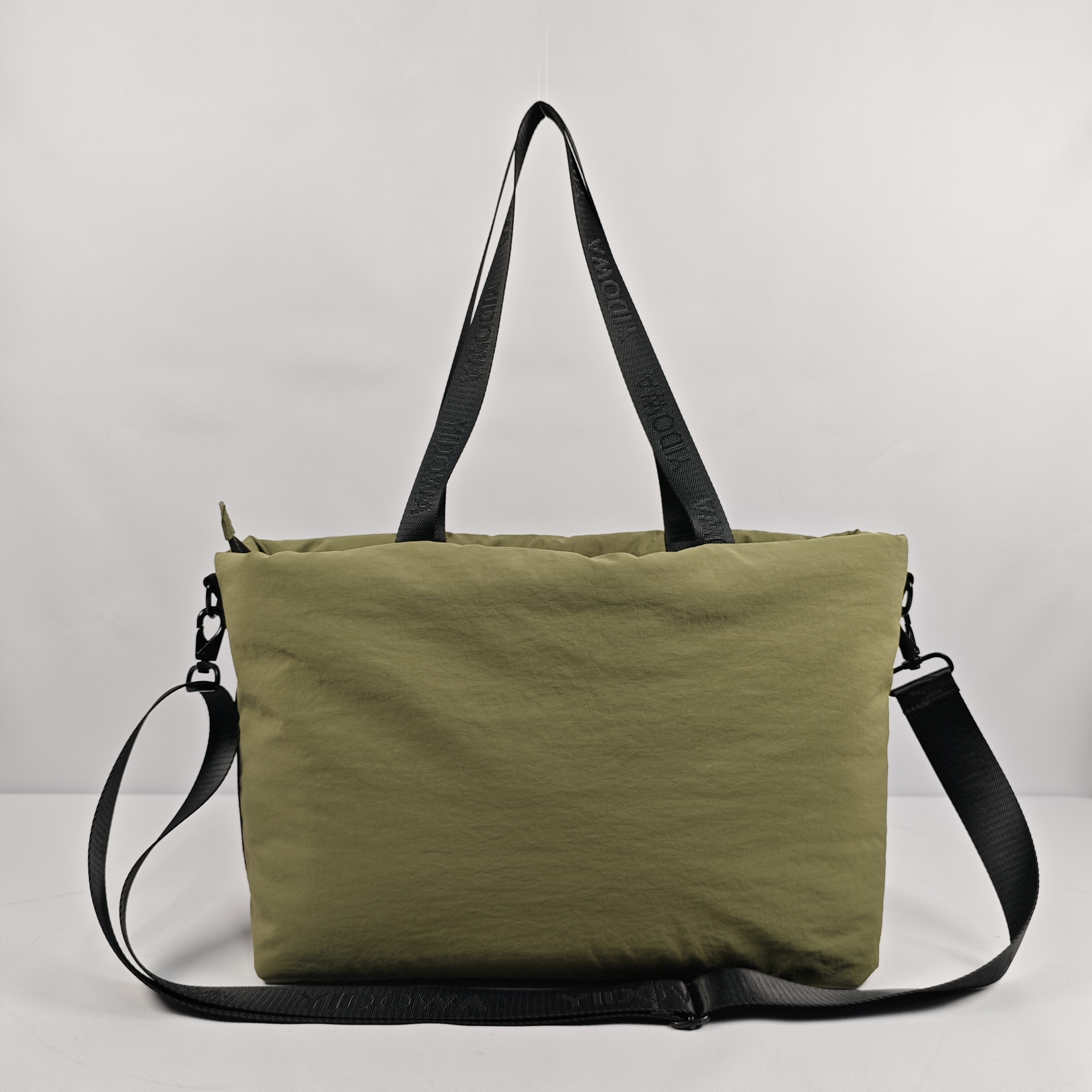 Crafted from durable, eco-chic washed nylon in a versatile army green, this mommy bag combines practical functionality with understated style. Its soft, weathered finish not only looks great but also hides wear and tear with ease.