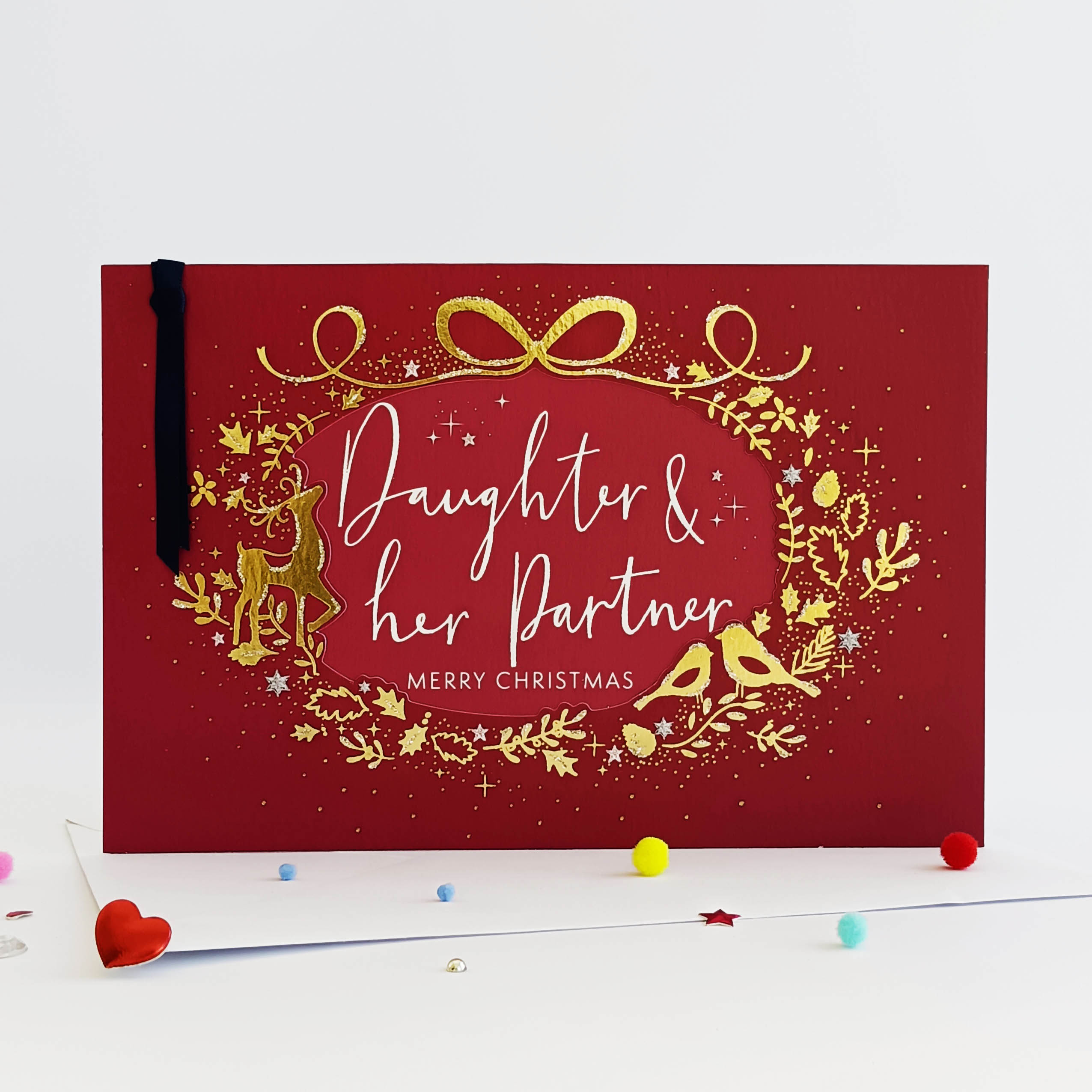 Finishing : Gold foil + blue ribbon knot