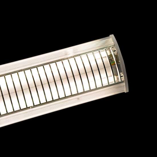 This presented grid lamp can be either ceiling mounted or suspended by rods. The ABS housing allows adequate protection. This displayed grid lamp is ideal for shopping mall and office use.