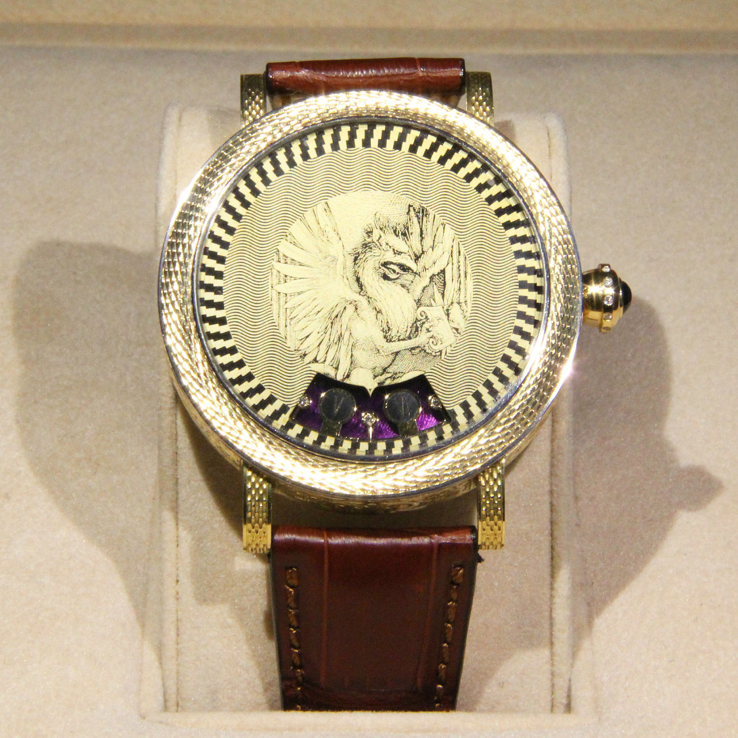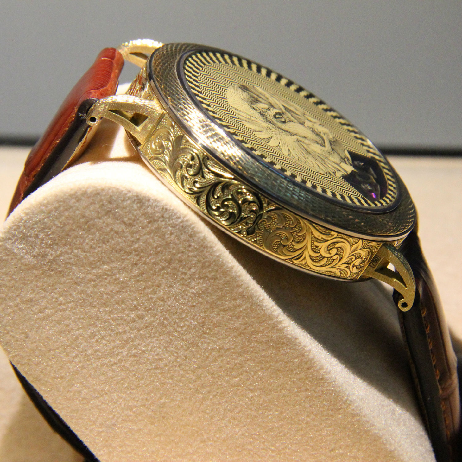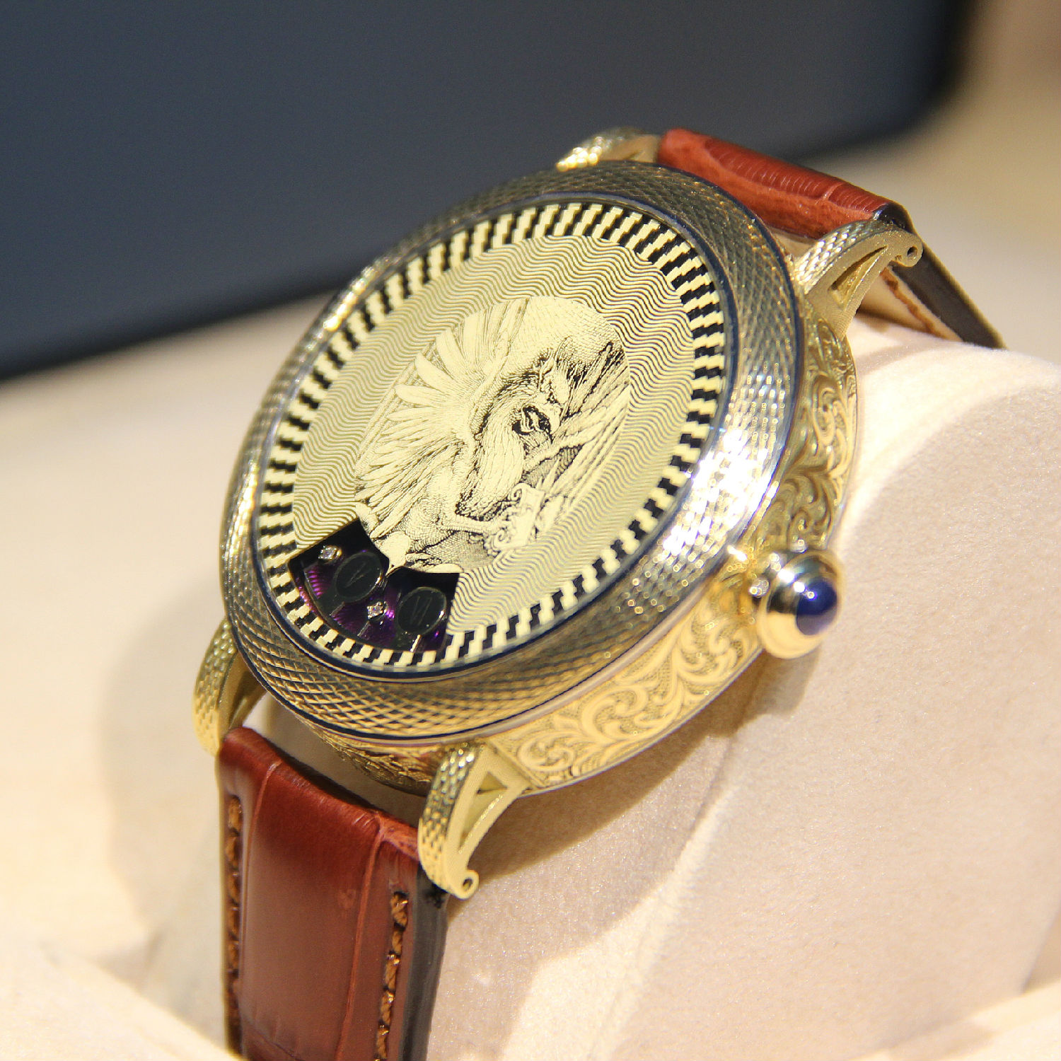The dial made using technique of bezel with guilloche.