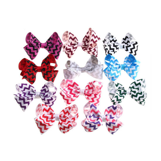 This grosgrain flower hair clip comes in a bow knot shape. The bow knot is accented with colorful zigzag patterns. Keep hair out of the eyes with this decorative hair clip.