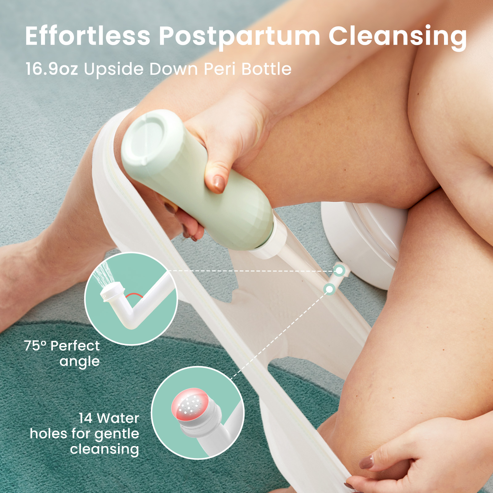 𝐄𝐟𝐟𝐨𝐫𝐭𝐥𝐞𝐬𝐬 𝐏𝐨𝐬𝐭𝐩𝐚𝐫𝐭𝐮𝐦 𝐂𝐥𝐞𝐚𝐧𝐬𝐢𝐧𝐠: The 17oz/500ml PERI bottle makes postpartum cleaning a breeze! With a 75° angled spout and 14 gentle spray holes, it reaches hard-to-clean areas effortlessly. Grownsy's leak-proof design ensures peace of mind throughout the process.