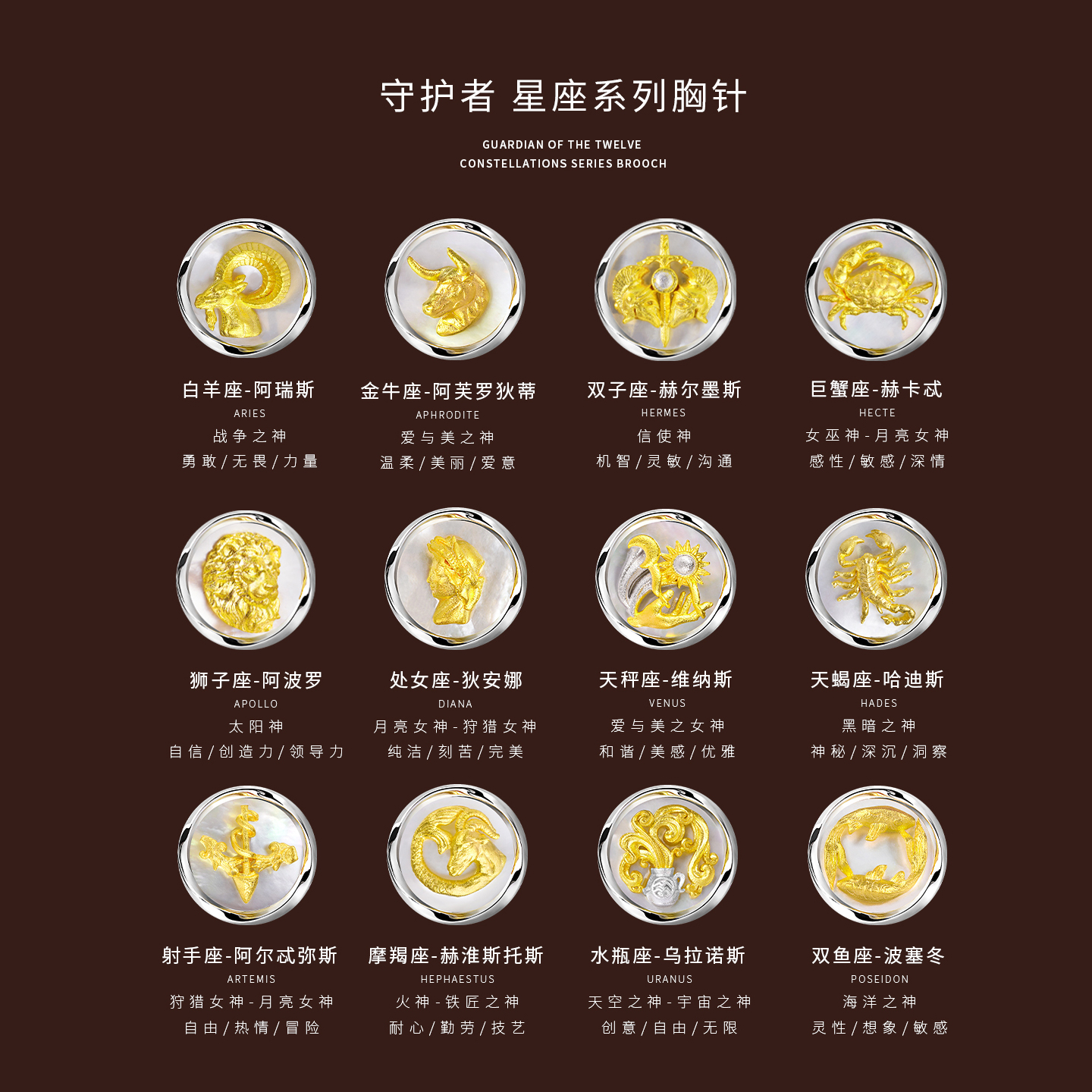 For solemn occasions such as business meetings, formal dinners and weddings, the MavinMarvy Zodiac Brooches serve as delicate accessories that enhance your presence. When paired with suit lapels (preferably fastened at the lapel buttonhole), velvet gowns or long coats, the minimalist yet exceptionally textured designs break the monotony of formal attire while highlighting elegant taste and sophisticated style.