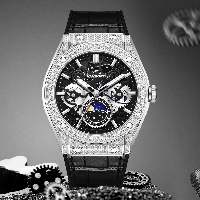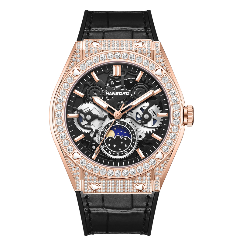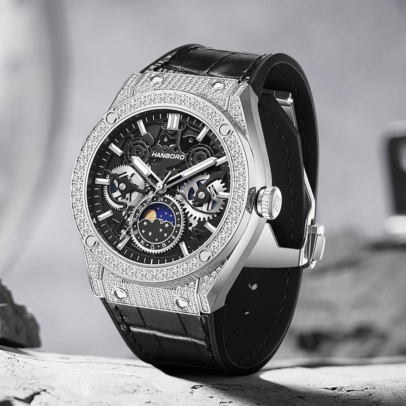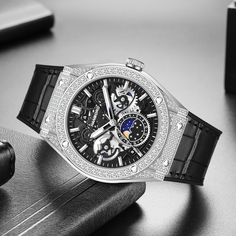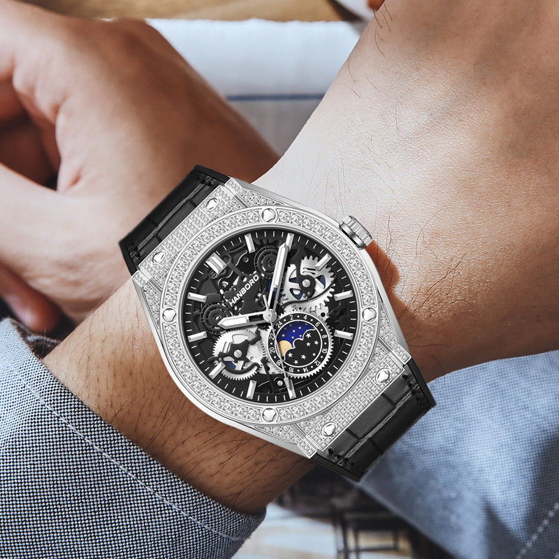 HANBORO Men's Full Diamond English Watch Fashion Trend Watch 723