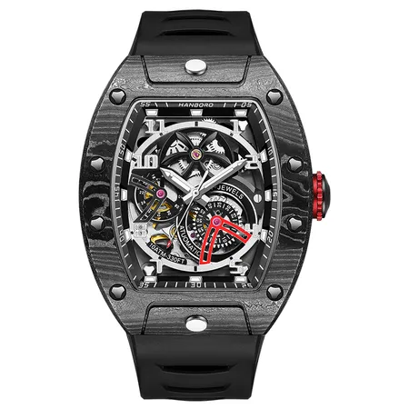 HANBORO Ultra Series Carbon Fiber Multifunction Automatic Mechanical Watch Skeleton Luminous Men's Watch 945-3