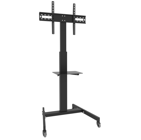 Adding extra flexibility to audience, this TV cart features four rollers at the bottom that allows user to move a heavy monitor easily across the room. The stand is also equipped with a small shelf in the middle to keep remote controls and gadgets organized.