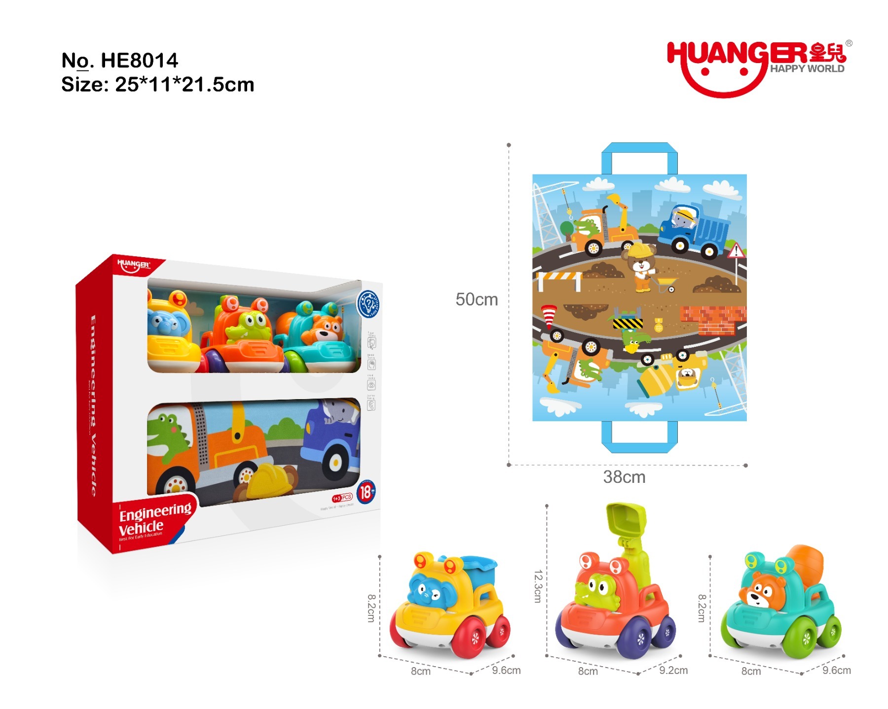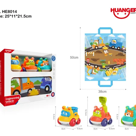 HE8014 CARTOON ENGINEERING VEHICLE+CLOTH BAG (MIXER TRUCK+DUMP TRUCK+EXCAVATOR TRUCK)