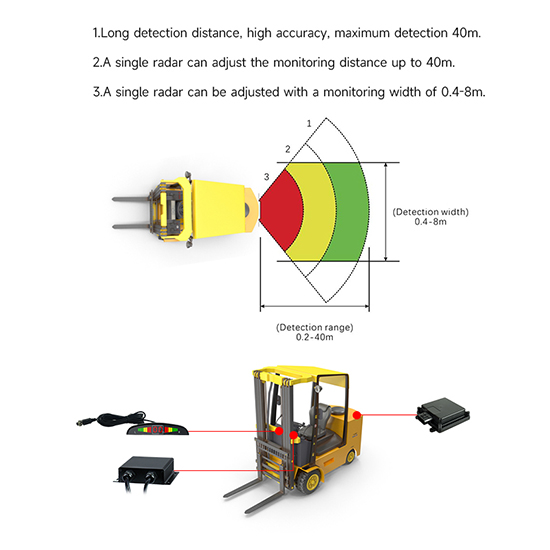 Detection distance: Length 0.2~40m, detection width can be limited, up to 3 detection areas can be set (the distance of each area can be configured)