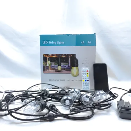 HRSYT RC and APP Control Hanging LED Patio Lights RGBW Bulb String Light DC24V IP65 Waterproof for Christmas or Holiday Decorations
